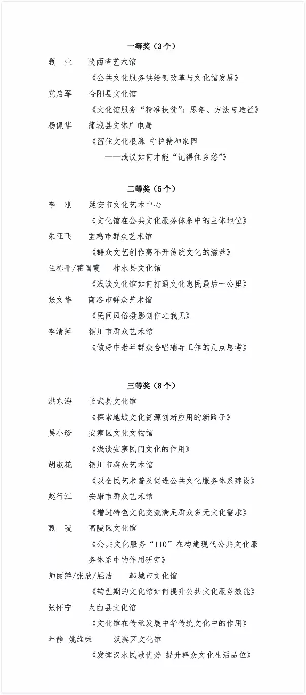 2017年陜西省群眾文化論文評獎結(jié)果