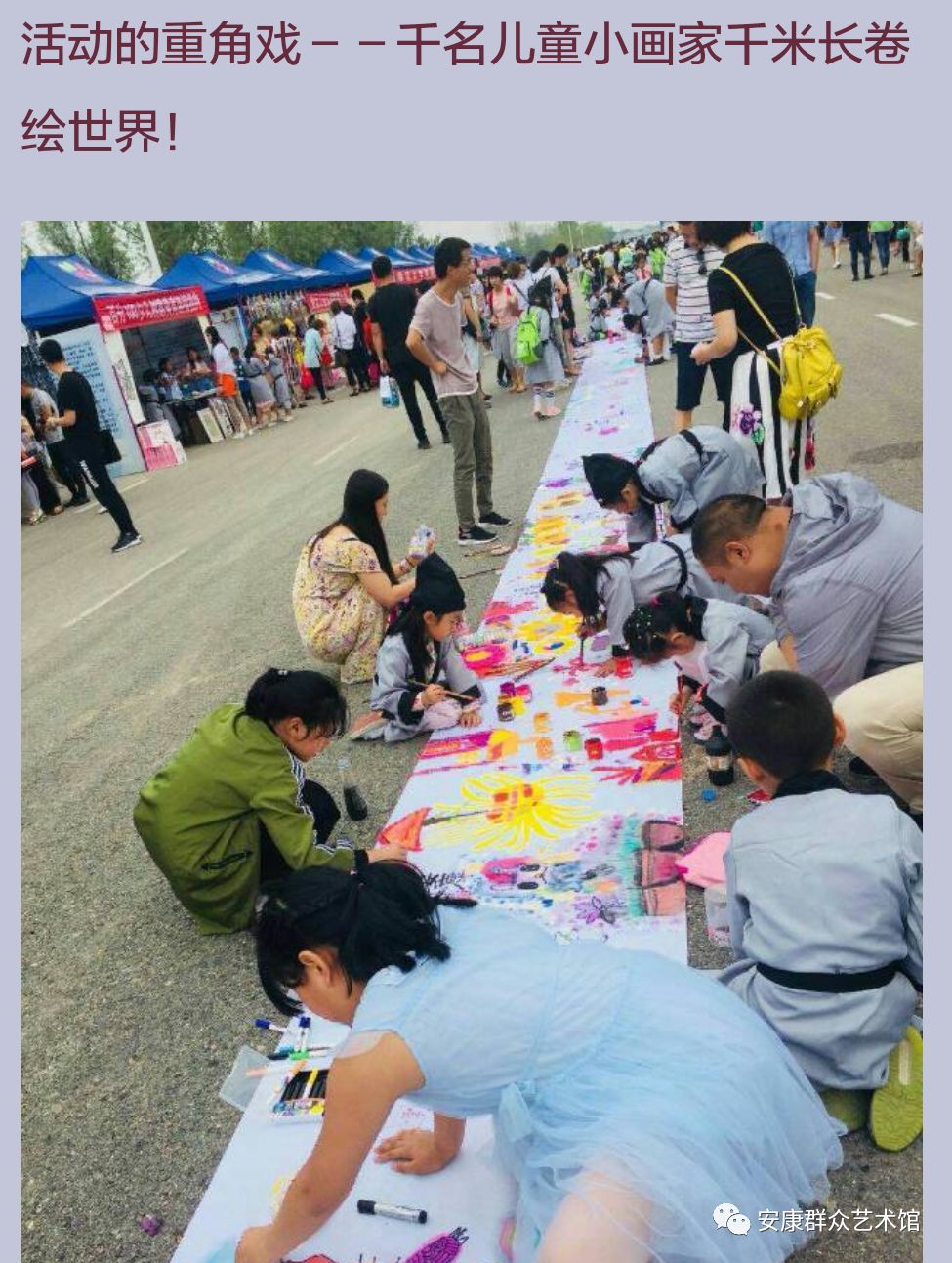 童年是初生的綠葉,童年是含苞的花蕾,童年是一片藍(lán)藍(lán)的天,童年是充滿美麗的夢幻。六月一日上午,“一帶一路”第三屆中國西安國際少兒美術(shù)節(jié)在西安國際美術(shù)城拉開帷幕。安康市群眾藝術(shù)館派出馬孟剛和劉曉東二位美術(shù)干部參加了此次少兒美術(shù)教育成果交流展。今天小編刊發(fā)劉曉東老師所發(fā)美篇截圖,帶給大家不一樣的精彩!