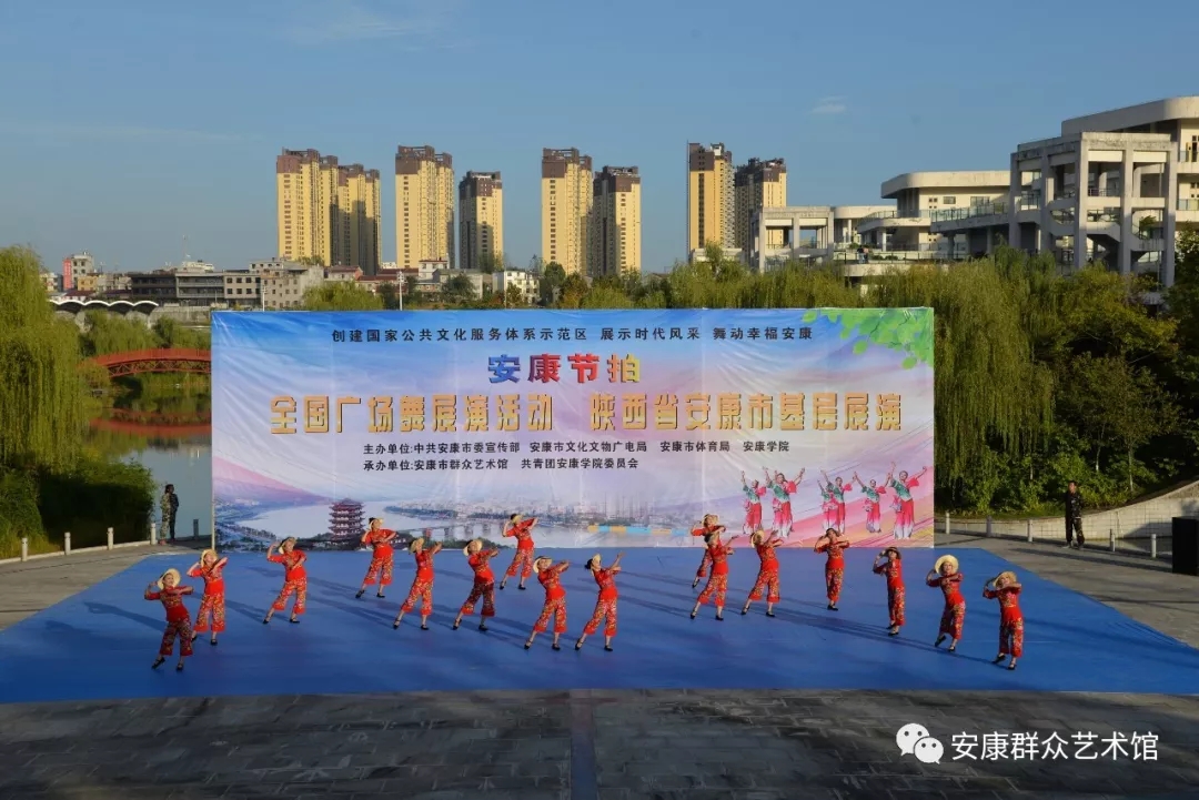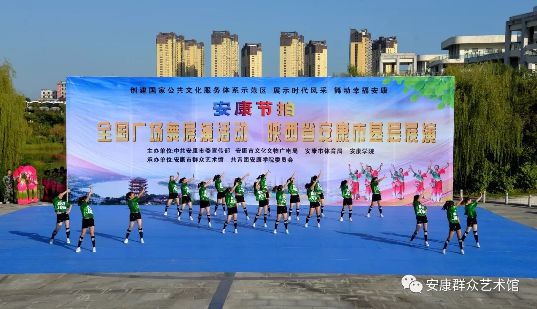 9月29日下午,由中共安康市委宣傳部、安康市文廣局、安康市體育局、安康學(xué)院主辦,安康市群眾藝術(shù)館、共青團(tuán)安康學(xué)院委員會(huì)承辦的“安康節(jié)拍”群眾廣場(chǎng)舞展演活動(dòng)在安康學(xué)院江北校區(qū)濱湖廣場(chǎng)舉行。安康市文廣局黨組書(shū)記、局長(zhǎng)楊海波,安康市文廣局黨組成員、副局長(zhǎng)王軍,安康學(xué)院團(tuán)委書(shū)記李光梓,安康市群藝館黨支部書(shū)記、館長(zhǎng)周墻等領(lǐng)導(dǎo)參加展演活動(dòng)。
