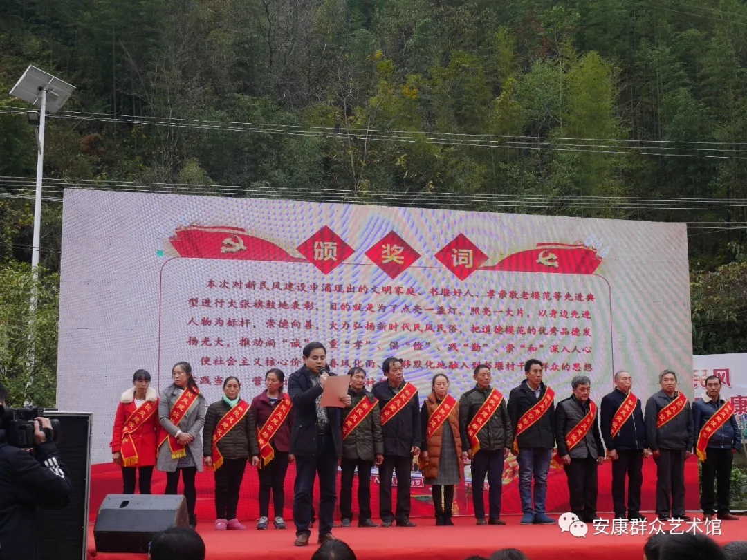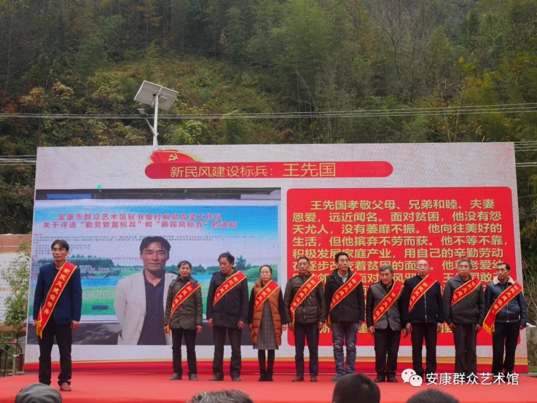 勤勞致富,脫貧攻堅奔小康。弘揚新風(fēng),凝聚振興新力量。在脫貧攻堅進入決戰(zhàn)之際,11月19日,由安康市文廣局、安康市群眾藝術(shù)館、麻柳鎮(zhèn)黨委、政府主辦,安康市群眾藝術(shù)館駐書堰村脫貧攻堅工作隊、書堰村黨支部、村委會承辦,書院小學(xué)、書堰村村民監(jiān)督委員會、書堰村十四個村民小組協(xié)辦的“勤勞致富標(biāo)兵、新民風(fēng)建設(shè)標(biāo)兵”表彰大會在紫陽縣麻柳鎮(zhèn)書堰村隆重舉行。