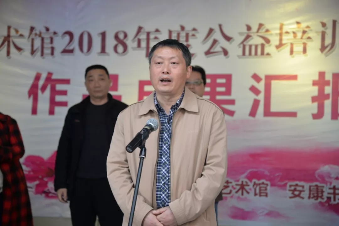 畫展開幕式上,書畫部主任馬孟剛主持,安康市群藝館館長周墻發(fā)表致辭。
